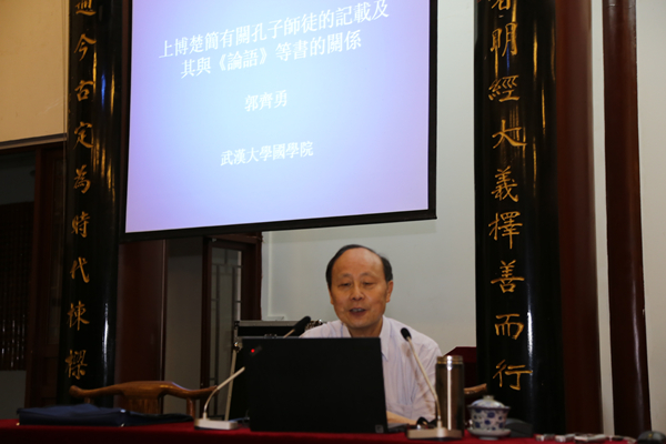 在讲座中,郭齐勇教授认为,上博楚简所见孔子与颜回、子路、子贡的对话与故事也十分有趣。上博竹简中有关孔子与七十子的对谈与故事,似乎介于《论语》与汉代儒家杂说《韩诗外传》、《说苑》、《孔子家语》诸书之间,不如前者精炼、准确,又不像后者铺陈太过。这些可能就是战国中后期的儒家作品。上博简中所涉孔子与七十子的数据,至少有一部分与《论语》中的某些章节具有相关性,有的似乎是其演绎与展开,扩展为较完整的、有场景的对话或故事。