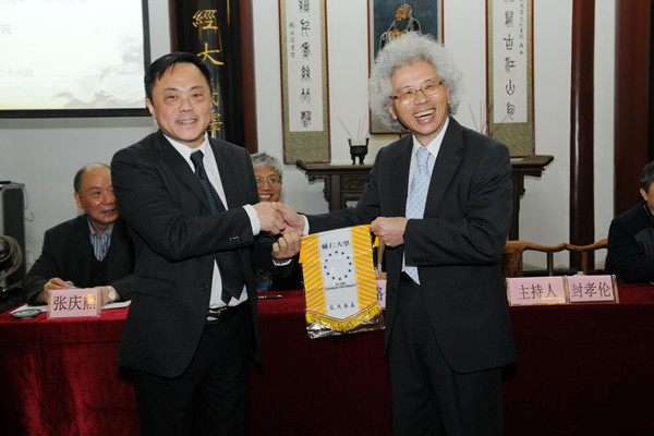 台湾辅仁大学哲学系主任尤煌杰教授向贵州大学人文学院、中国文化书院赠送挂旗