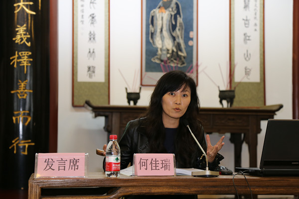 贵阳孔学堂文化传播中心主任、理事会秘书长候楠女士出席孔学堂时段研讨并致辞(图片来源:贵州大学新闻网)