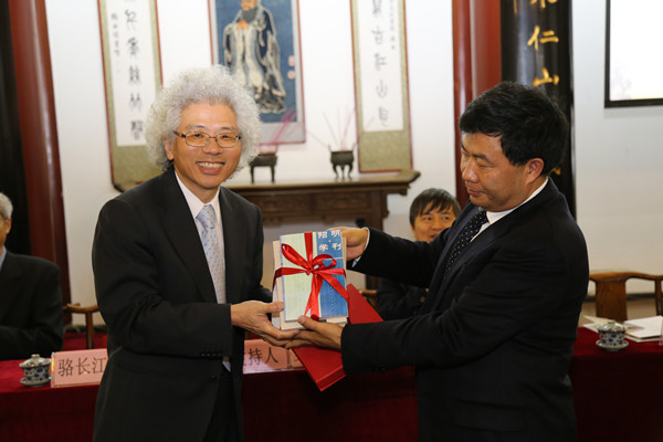 贵州大学党委副书记骆长江向中国人民大学赠送中国文化书院学术年刊《阳明学刊》全套
