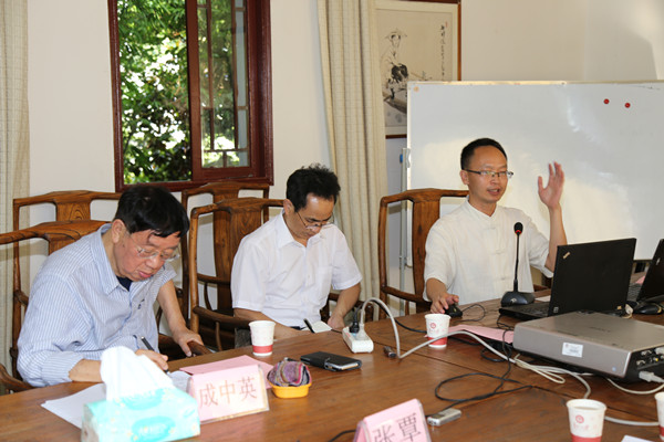 人文学院院长庄勇教授在座谈中谈及自己对成中英先生的仰慕和敬佩之情。人文学院副教授、中国文化书院兼职研究员张明就贵州大学在对阳明文化研究上的一些学术成果和研究情况做了详细介绍。他通过对王阳明生平及时代背景、龙场悟道及意义、阳明心学影响等几个方面,详尽地展示了贵州阳明学的发展脉络,并通过梳理阳明文化在贵州的学术传承,论证了贵州大学与阳明学的内在精神联系和所具有的悠久历史学统。