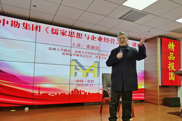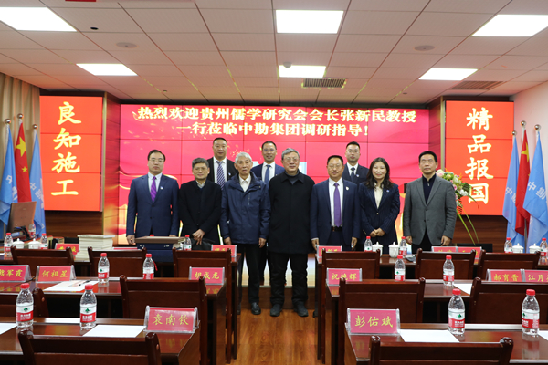 为大力弘扬中华优秀传统文化和推进新时代企业儒学发展,2021年3月13日,贵州省儒学研究会创始暨现任会长、贵州大学中国文化书院荣誉院长张新民教授,率贵州省儒学研究会副会长、贵州大学中国文化书院特聘兼职研究员杨德俊,贵州省儒学研究会副会长、贵州大学历史与民族文化学院教授黄诚及贵州省儒学研究会副会长、贵州师范大学教授王进一行四人,前往位于贵阳观山湖区的中勘集团总部进行讲学及交流。