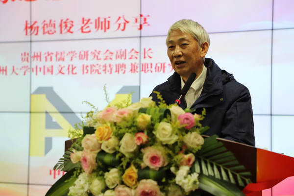 杨德俊副会长先就王阳明在龙场悟道后遗留下的历史文化遗迹保护情况进行了全面介绍,对王阳明的思想进行了自己解读:一是认为王阳明主张士、农、工、商是社会分工的不同而无高低贵贱之分,体现了其平等亲民思想,可以应用到企业中激发员工在不同岗位展开有意义的工作;二是指出企业员工要运用王阳明《教条示龙场诸生》的“改过”“责善”来进行批评与自我批评;三是对“知行合一”进行阐释,认为知中有行、行中有知、即知即行、知行并进,即是知行合一简明含义。