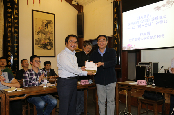 讲座开始前,林乐昌教授向中国文化书院、哲学与社会发展学院赠送了自己最新出版的《张载理学与文献探研》一书。中国文化书院以新近出版的书院大型连续学术辑刊《阳明学刊》(第八辑)和《人文世界》(第七辑)进行了回赠。