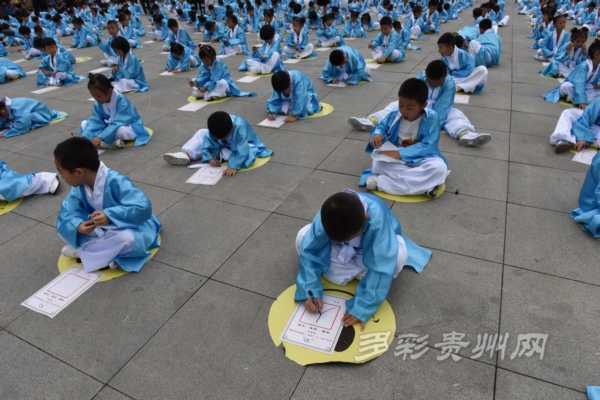 来自第七届两岸汉字艺术节的两岸艺术家代表、学者代表、师生代表及有关领导一千余人齐聚贵阳孔学堂,举释奠古礼,祭祀先师孔子,以追思先贤,蒙童开笔启智,以崇德立志。