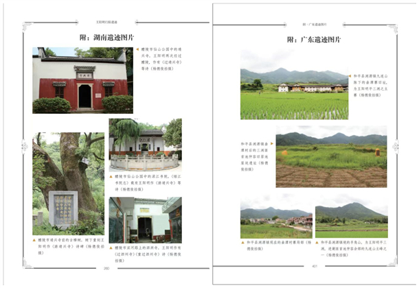 在本书编辑过程中,贵州大学中国文化书院荣誉院长、贵州省儒学研究会会长张新民教授帮助审定篇目,宁波市王阳明文化研究促进会副会长华建新,天津市工会管理干部学院教授陈寒鸣,贵州大学教授黄诚、张明、葛静萍,广西师范大学教授王学伟,隆安中学高级教师陆有作,修文县委宣传部部长肖伦文,《修文县志》总纂夏之奎,平和县委宣传部副部长张山梁,和平县委宣传部原副部长、王阳明研究会会长杨廷强,分别对一些章节帮助补充部分内容,并提出一些很好的建议。阳明遗迹地的不少朋友无偿帮助拍摄和提供所缺照片,如南昌的刘萍、杭州的吴燕琴、吉安的罗丽琼、隆安县的卢杰英四位女士。还有余姚的王巨明、绍兴的张炎兴、南京的刘晓民、滁州的张祥林、平和县的张山梁、和平县的杨廷强、赣州的董华、崇义的徐影等很多位先生也无偿提供照片。未曾谋面的有北京的刘胜光、李佳兴,苏州的胡阳行、南昌的杜贤胜、南京袁润泽、浚县的郭如民、济南的周天蛟、宜春的张广教、等多位先生,也无偿帮助拍摄照片。本书出版印刷经费得到中共宁波市委宣传部、中勘集团董事长胡正森先生、北京浩言文化旅游有限公司、江苏宏德文化出版基金会资助出版,在此,对关心和支持本书的各位朋友表示衷心的感谢。