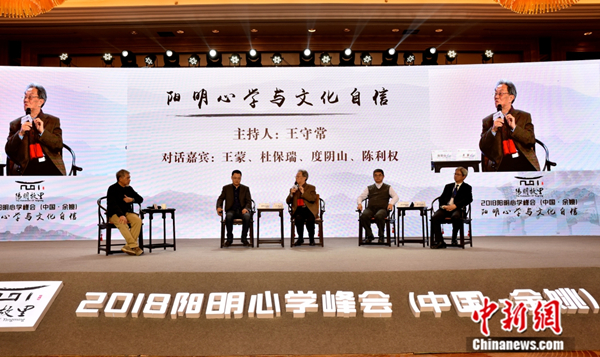 2018阳明心学高峰论坛在浙江余姚举行,200余位海内外专家学者参加论坛。中新社记者 何蒋勇 摄