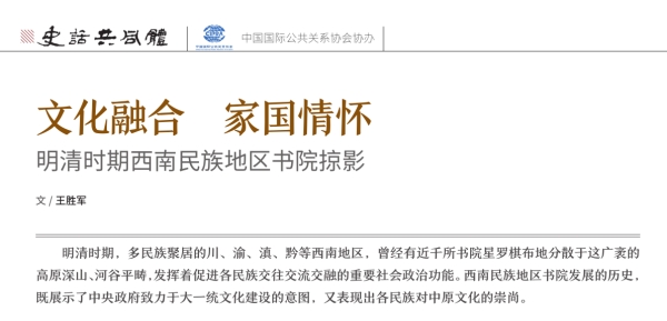 明清时期,多民族聚居的川、渝、滇、黔等西南地区,曾经有近千所书院星罗棋布地分散于这广袤的高原深山、河谷平畴,发挥着促进各民族交往交流交融的重要社会政治功能。西南民族地区书院发展的历史,既展示了中央政府致力于大一统文化建设的意图,又表现出各民族对中原文化的崇尚。