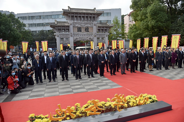 开幕式之前,在王阳明故居广场举行了礼贤仪典,张新民教授与来自全国各地的知名学者、当地的乡贤代表以及文化工作者一道共同参与仪典。礼贤仪典现场举行了敬献花篮、整理敬联仪式并通过全体来宾向王阳明先生像行鞠躬礼,朗诵人员和社会各界人士代表满怀激情朗诵王阳明经典篇目《书中天阁勉诸生》及王阳明十句名言等一系列活动,共同表达了对心学大师阳明先生的敬意。
