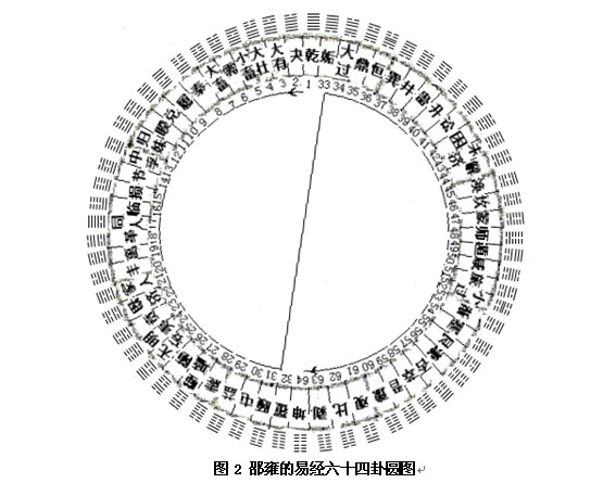 邵雍以易经六十四卦圆图表示循环往复、无始无终的宇宙时间,故宇宙时间是以 -型曲线循环递进的螺旋。这与六十甲子纳音五行排布出来的时间递进序呈螺旋状完全合拍。